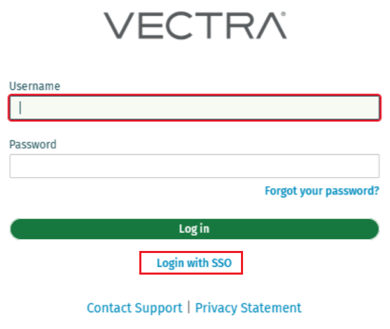* Click the **Login with SSO** button on the login page for your Vectra QUX deployment.
