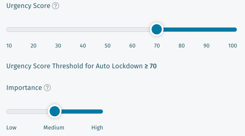 * ​​​​​​For RUX deployments, the relevant thresholds are the urgency score of the account entity and the importance.