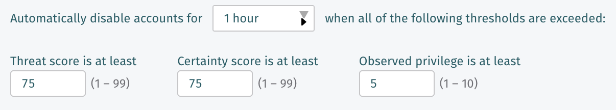 * For QUX deployments, the relevant thresholds are the threat and certainty score of the account entity along with its observed privilege.