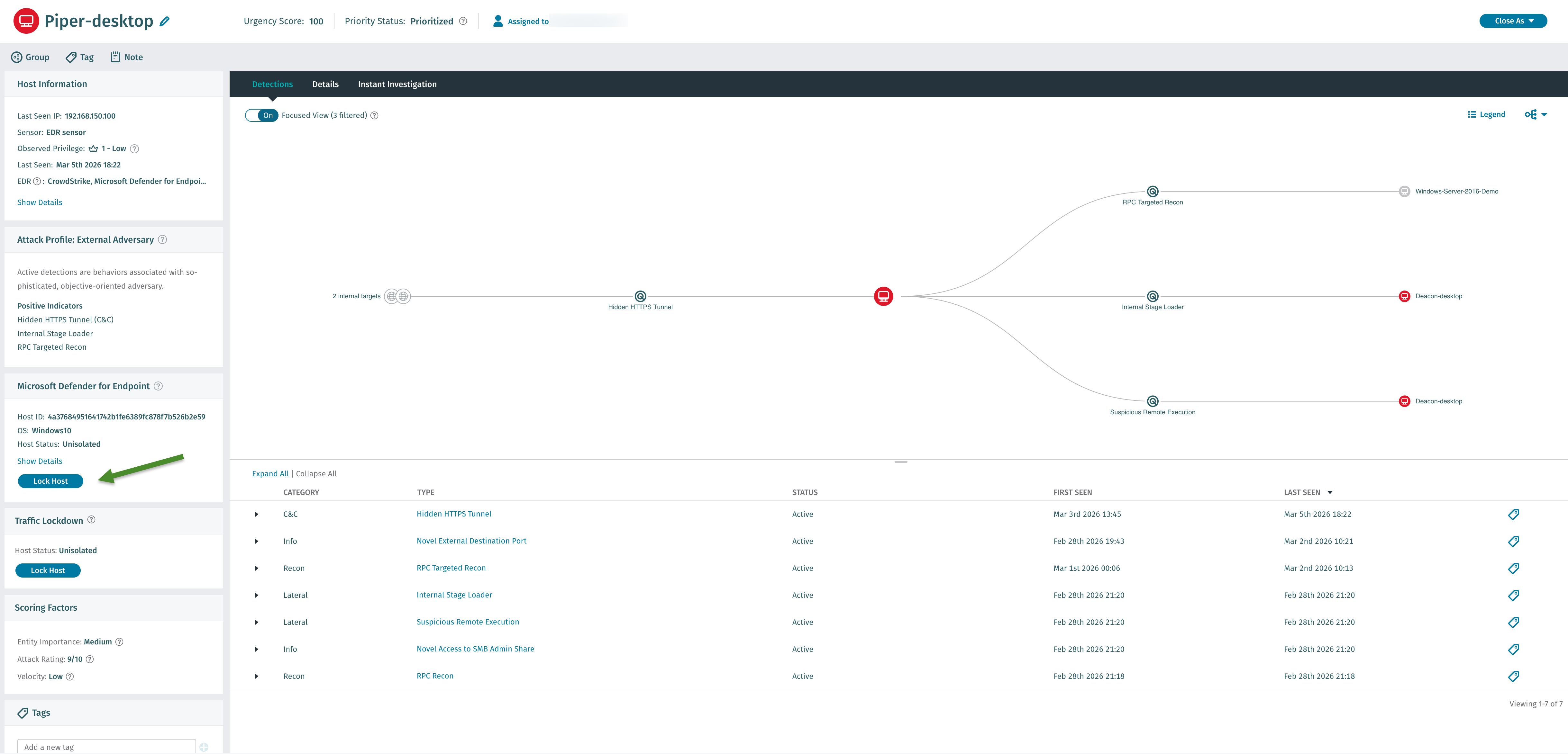 2. Automatically, where Detect can be configured to automatically lock hosts based on configured Observed Privilege, Threat and Certainty score thresholds.