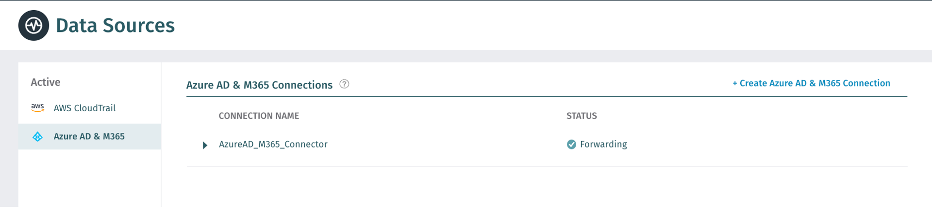 Once access is authorized the Status for your new data source connector should report Forwarding. This status may take 10 to 15 minutes to appear while the initial data is collected.