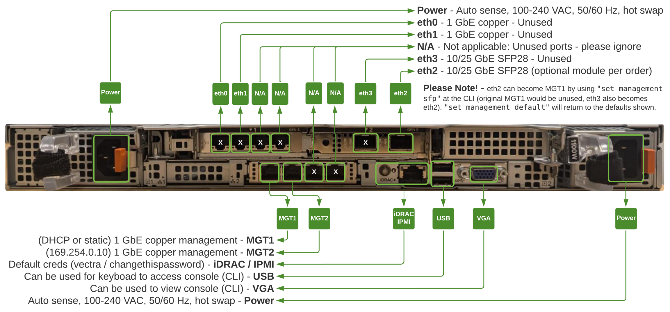 The X47 can be configured by the customer to allow the port labeled as eth2 (10/25 GbE SFP28) on the back of the appliance to function as the MGT1 port.