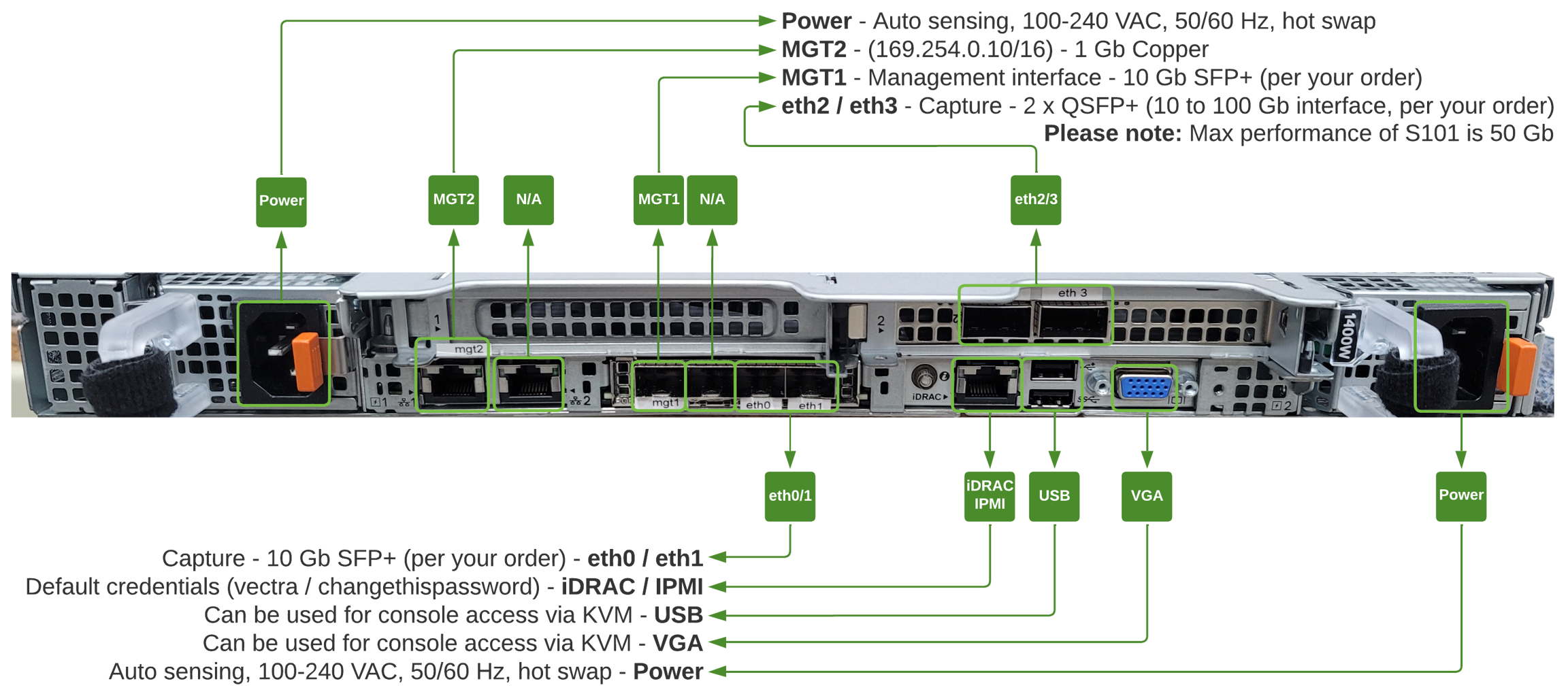 It is highly recommended to connect the iDRAC / IPMI interface and use it for any console access that cannot be accomplished via the normal MGT1 / MGT2 ports, or KVM.