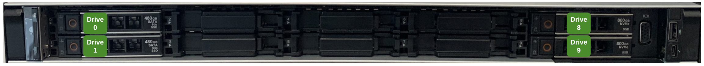 The S101 has drives on the front left side and front right side of the appliance. See the diagram for disk numbers