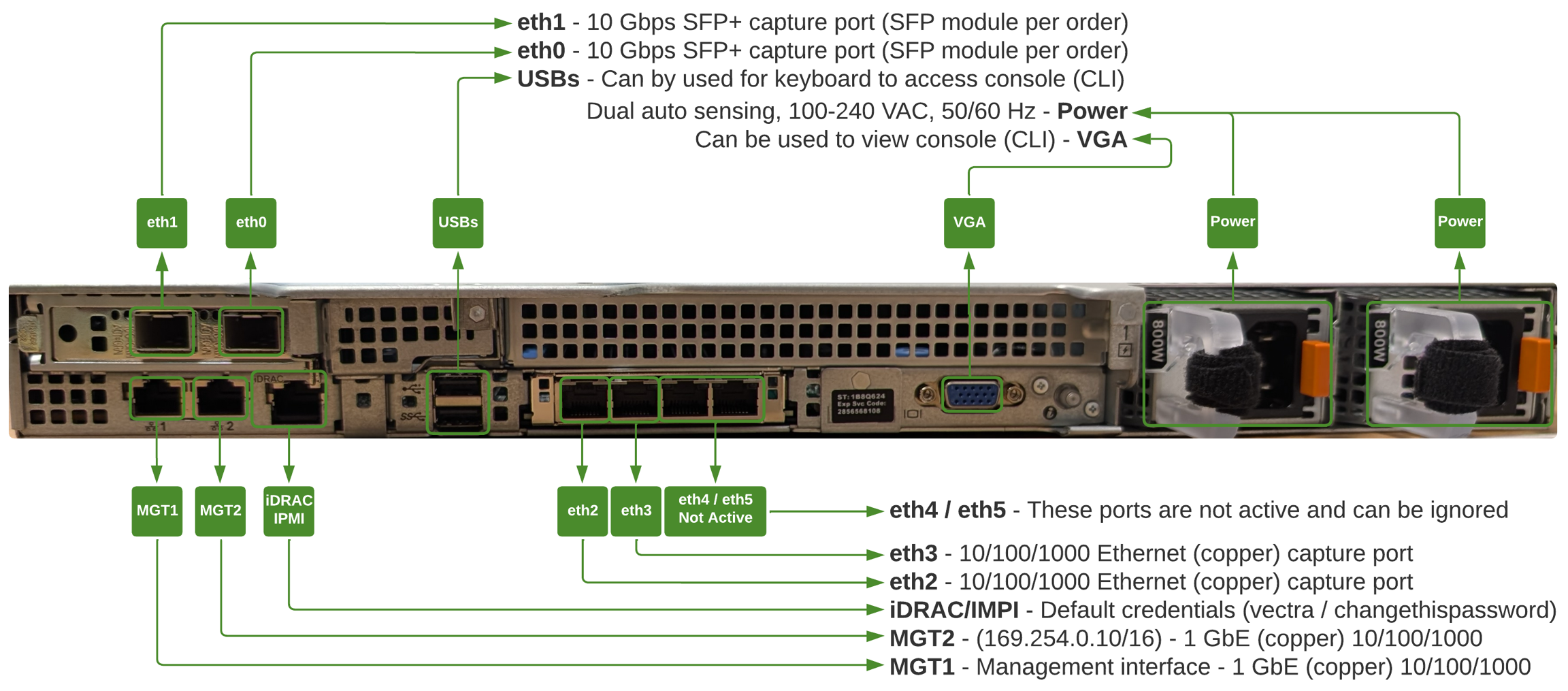 Capture - RJ-45 ethernet (1 Gbps copper), or SFP+ if deploying in Mixed or Sensor mode.