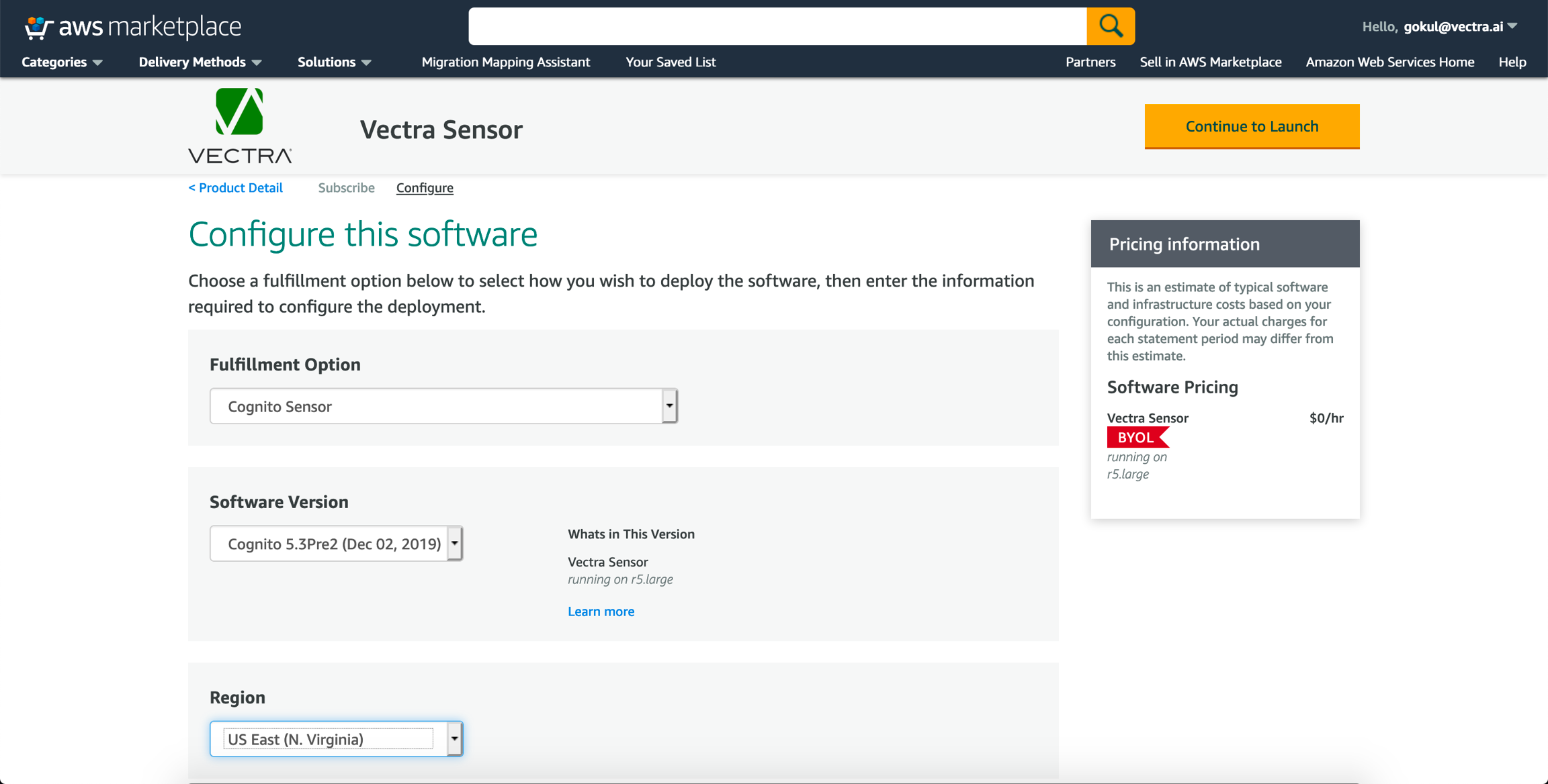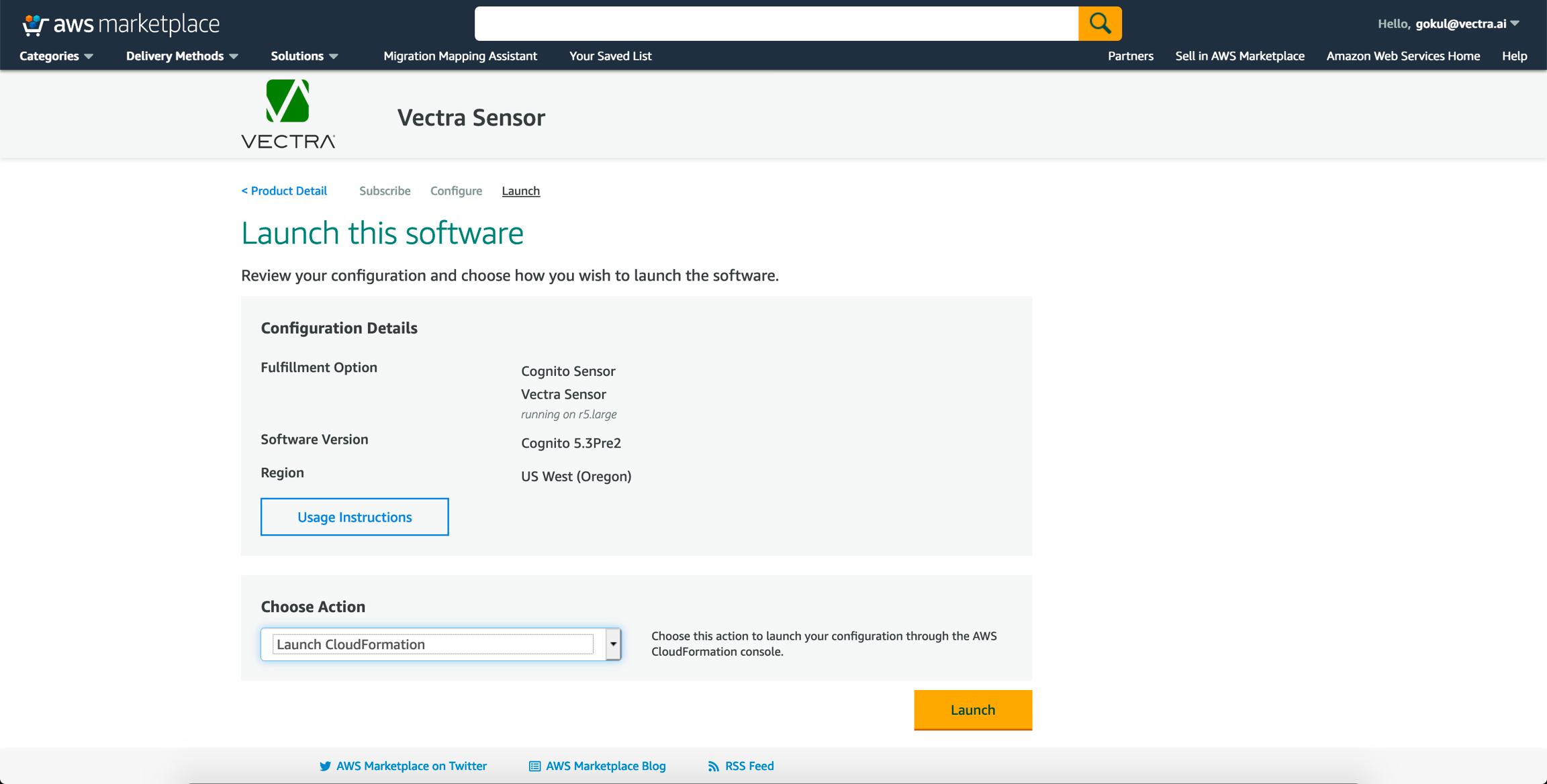 The Sensor software is available as an Amazon Machine Image along with an AWS CloudFormation template that enables easy deployment as follows: