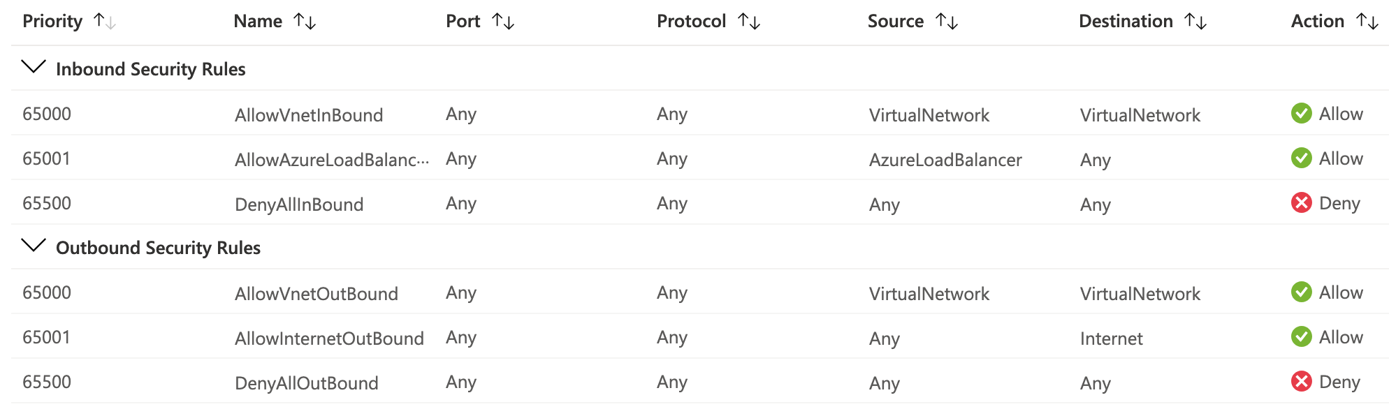 After deployment, the Brain will have a default Azure Security Group configured as seen below: